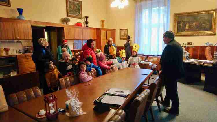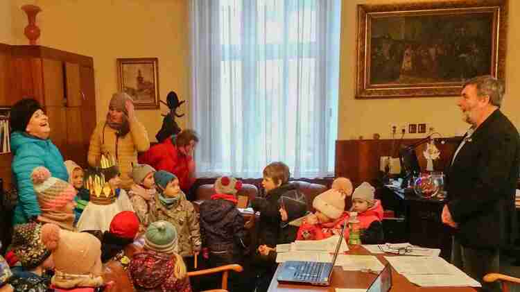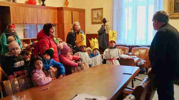 Dnes nás na radnici navštívily děti z MŠ Koníček a MŠ Na Vápence, aby nás potěšily písní "My tři králové" a hlavně nám popřály hodně zdaru v novém roce. Za to si např. od pana starosty vysloužily vitamínovou odměnu v podobě pomerančů a mandarinek. Moc jim děkujeme.